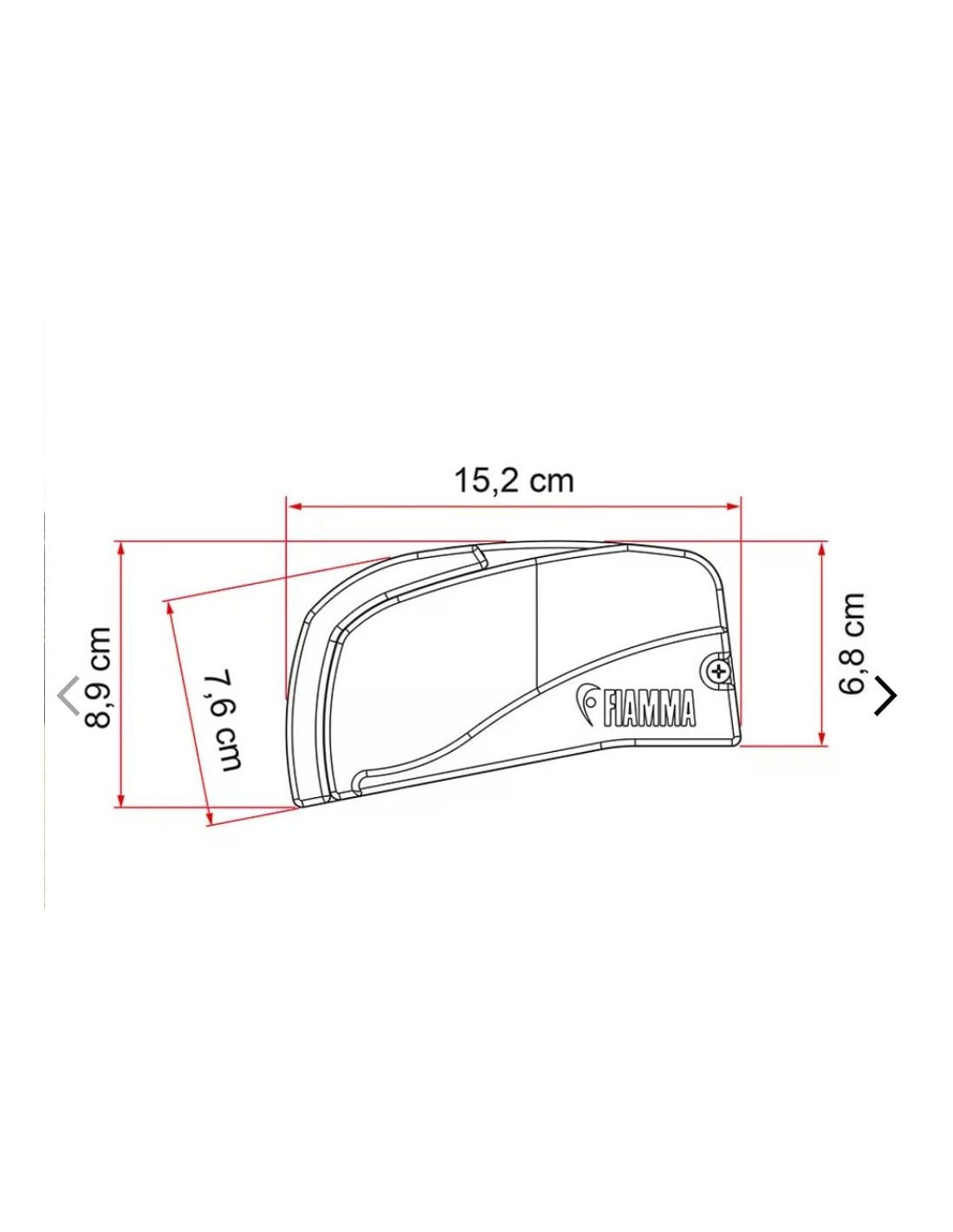 * Brazos reforzados con sección reducida, el brazo sale en línea recta (inclinación ángulo 0°) y puede subir solo de 5° para maximizar la altura disponible bajo el toldo, sin obstaculizar nunca la apertura y el cierre de la puerta lateral cuando el toldo está abierto.